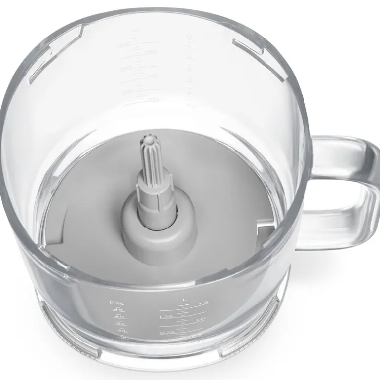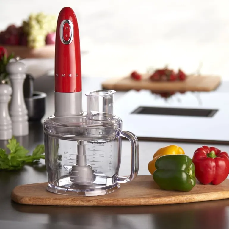 Med Smeg 50’s style foodprosessor med 1,5 liters kapasitet får du et flerfunksjonelt tilbehør til stavmikser HBPF11, perfekt for en rekke kjøkkenoppgaver. Denne 5-i-1 foodprosessoren lar deg enkelt skjære, hakke, rive eller piske med sine allsidige funksjoner. Den romslige Tritan™ Renew-bollen på 1,5 liter har måleintervaller og antiskli-føtter for stabilitet, og den avtakbare girboksen gjør den enkel å håndtere. Bollen er BPA-fri, oppvaskmaskinsikker og utstyrt med en praktisk trykksnor.