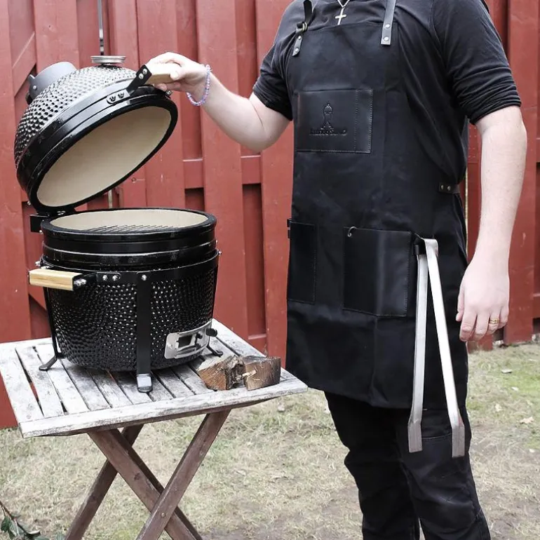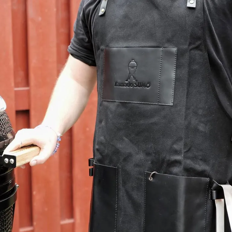 Skikkelig fint forkle i vokset bomull med skinndetaljer. Imponer gjestene dine med et ekte kvalitetsforkle fra Kamado SUMO. Vokset bomull gir den ekte kvalitetsfølelsen og sammen med skinndetaljene og de stilige spennene i metall er det et forkle som passer til en ekte grillmester.Mål:Bredde: 66 cmLengde: 100 cm