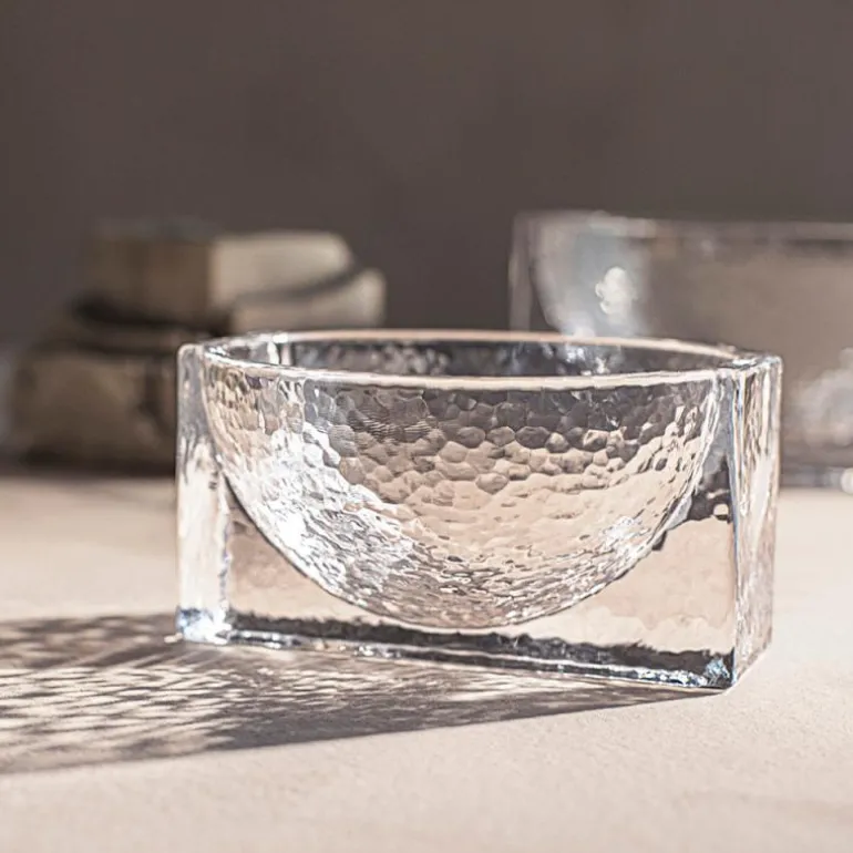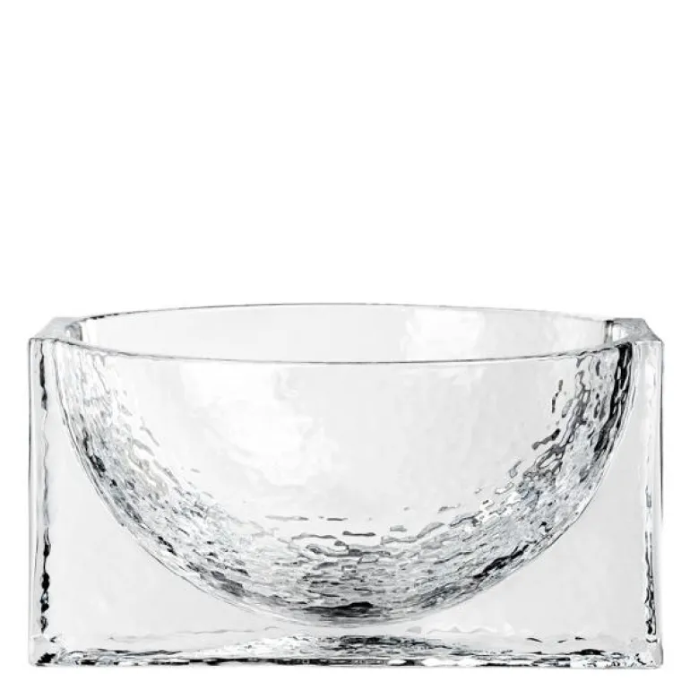 Forma er med sine tunge skulpturelle konstruksjoner i massivt glass, en produktserie med røtter i den historiske Bauhaus tiden, hvor former som kuber, kuler og sylindere fungerer som primære former. Forma har samme grafiske styrke i form av massive geometriske former, som er støpt inn i hverandre.Skålen har en diameter på 21 cm er laget av presset klart glass. . Glasset har en strukturert overflate på hver side, som gir en subtil kontrast til de solide og strenge geometriske formene. Skålen er skulpturell og dekorativ, som gjør den til en statement vase, den passer godt alene eller sammen med andre forma produkter.
