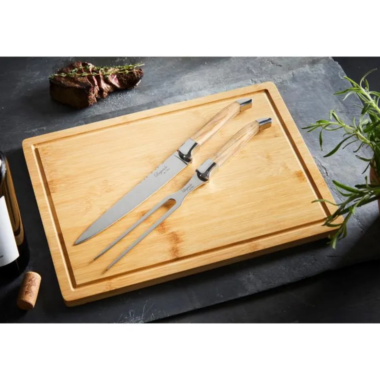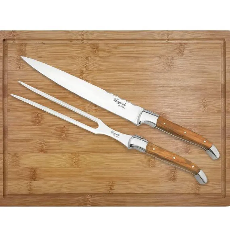Laguiole er navnet på den spesielle formen som kniven og stekegaffelen har. Navnet kommer fra en fransk by.