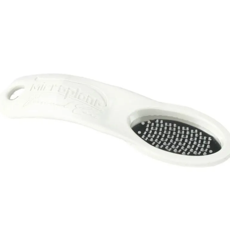 Microplane er mest kjent for sitt effektive rivjern, men har også utviklet en effektiv fotfil og fotpolerer inspirert av en amerikansk kvinne som brukte sitt Microplane rivjern for å fikse føttene før et bryllup. Med fotfilens 95 toveis mikroinnsats i rustfritt stål har Microplane laget en unik eksfolierende fotfil som skånsomt og komfortabelt fjerner den harde huden og etterlater føttene silkemyke.