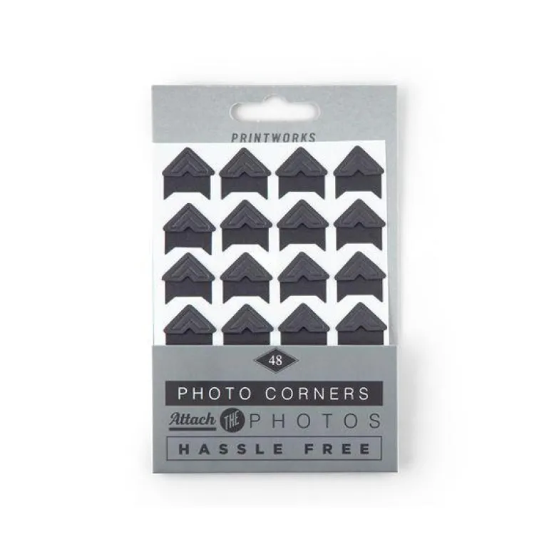 Fest bildene dine raskt og enkelt til fotoalbumene våre med disse matte, svarte limfotohjørnene. Inneholder 48 fotohjørner.