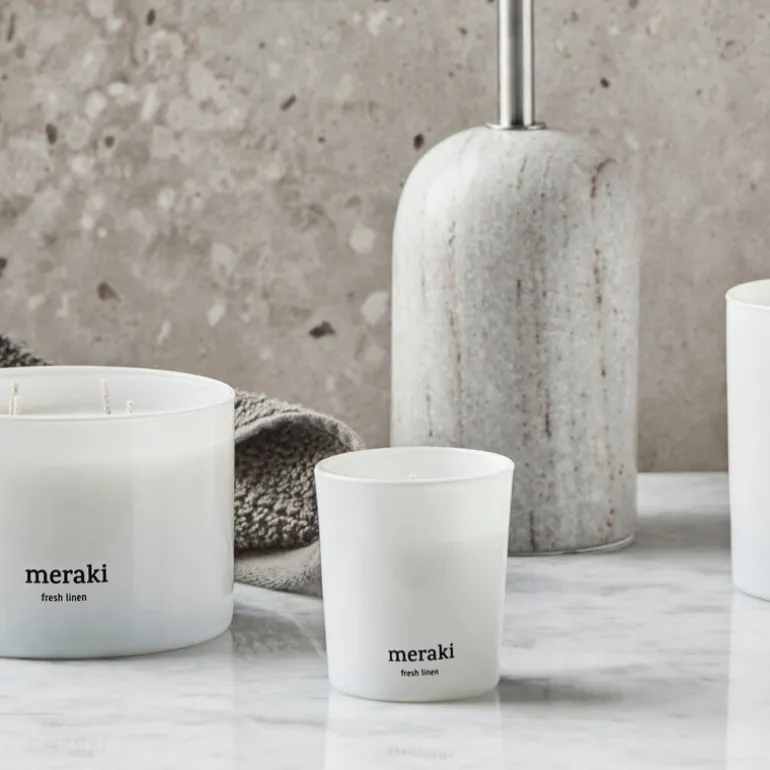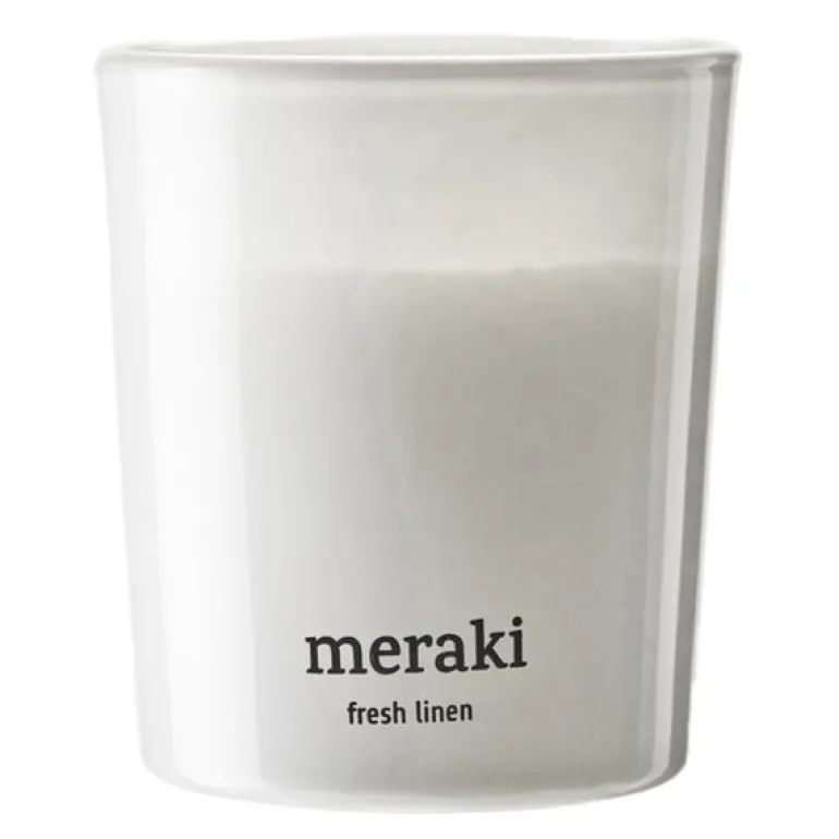 Fresh linen duftlys fra Meraki. Gjør hjemmet ditt til en fredelig oase med duftlyset Fresh Linen 7×6 cm fra Meraki. Opplev den friske duften av nyvasket lin gjennom de forfriskende toppnotene av sitron og appelsin. Mellomnotene av sjasmin og rose gir et subtilt floral preg, mens basisnotene av musk og vetiver skaper en myk og jordaktig finish.