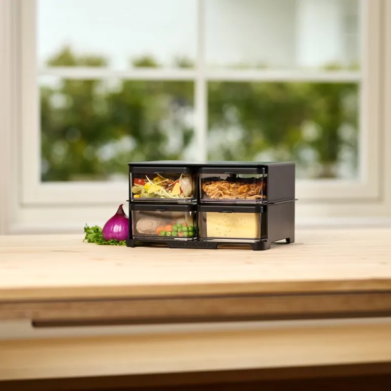 Dette smarte systemet gjør matlaging, matpakkesmøring og oppbevaring til en rask og stressfri oppgave. De medfølgende boksene kan også fungere som praktiske matbokser til lunsj, slik at du enkelt kan ta med deg maten på farten. Boksene er laget av slitesterk, resirkulerbar plast som tåler både mikro, fryser og oppvaskmaskin på opptil 70 grader. Dette gjør dem like praktiske som de er miljøvennlige.