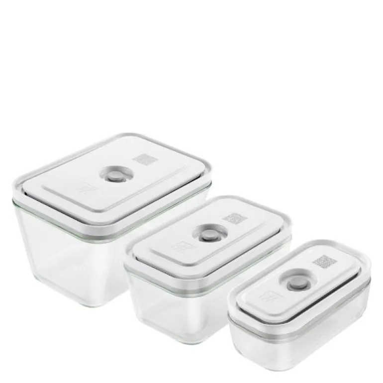 Med Fresh & Save vakuum box sett kan du bevare smaken og næringsstoffene i maten din i lang tid, samtidig som du reduserer matsvinn. Boksene er laget av slitesterkt borosilikatglass som tåler både mikrobølgeovn (uten lokk og vakuum) og ovn opp til +280 °C (uten lokk). Du kan til og med servere maten direkte fra disse stilige formene ved bordet.