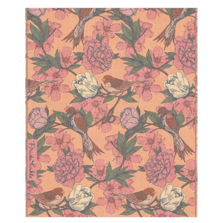 Frida Kahlo Primavera pledd fra Ekelund er et kunstnerisk og komfortabelt innslag i hjemmet, med et uttrykksfullt design inspirert av Frida Kahlos karakteristiske stil. Pleddet måler 140×170 cm og har en myk, børstet overflate som gjør det perfekt å ha i sofaen, over sengen eller som et lunt lag ute i hagemøblene på varme kvelder.