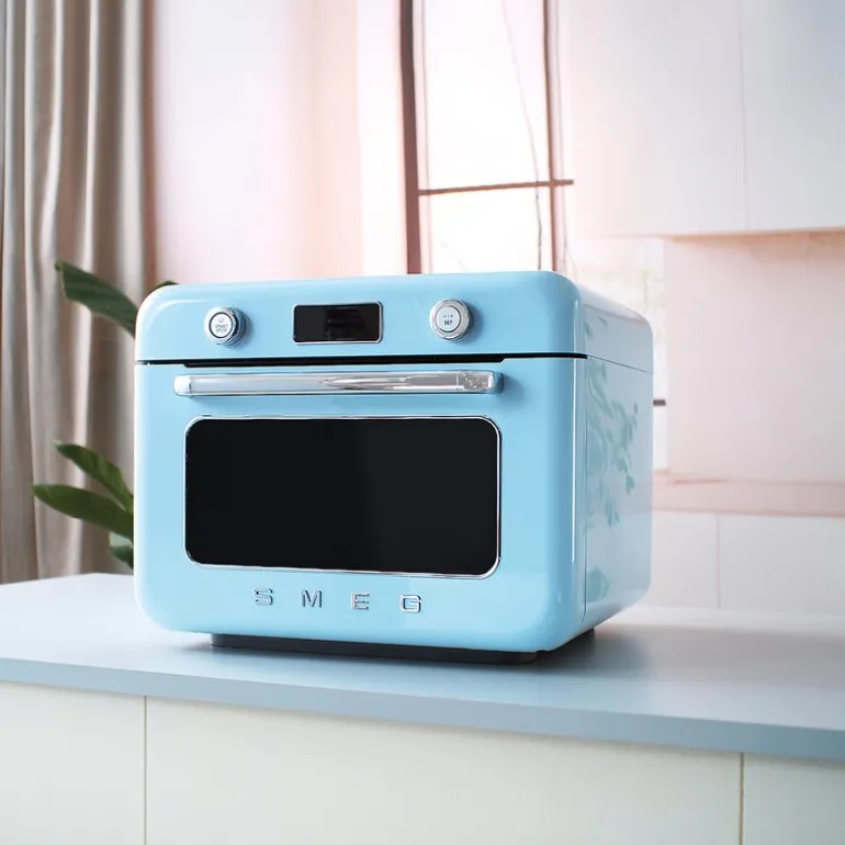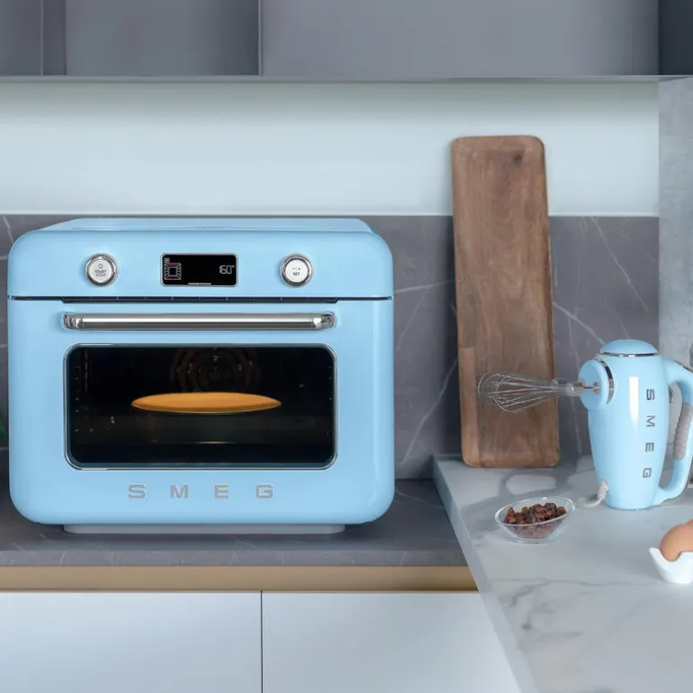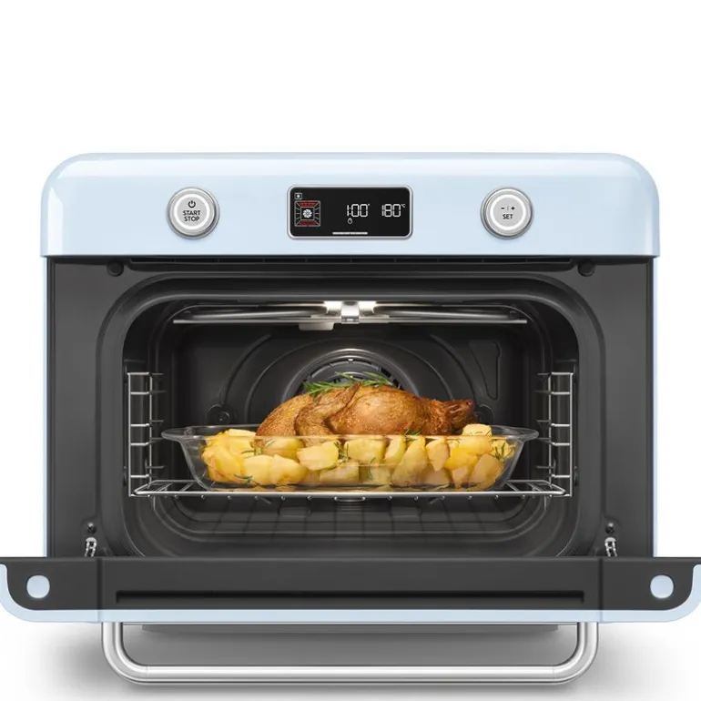50’s style Smeg COF01 pastellblå dampovn kombinerer innovativ teknologi og moderne design for å gi deg en enestående matlagingsopplevelse. Med et kompakt og allsidig design og optimal luftstrøm får du muligheten til å variere matlagingen med forskjellige metoder for perfekte resultater.