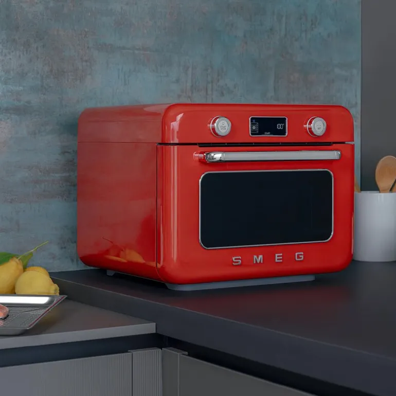 50’s style Smeg COF01 røde dampovn kombinerer innovativ teknologi og moderne design for å gi deg en enestående matlagingsopplevelse. Med et kompakt og allsidig design og optimal luftstrøm får du muligheten til å variere matlagingen med forskjellige metoder for perfekte resultater.
