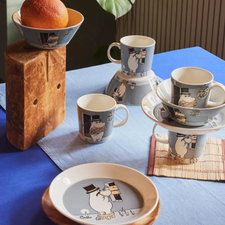 Mummi bolle 15 cm Mummipappa grå. Mummipappa klargjør huset for vinteren, slik at familien holder seg varm under vinterdvalen. Vinduene isoleres med planker og vedlageret fylles opp. Det gjør at kulden stenges ute og varmen holder seg i huset.