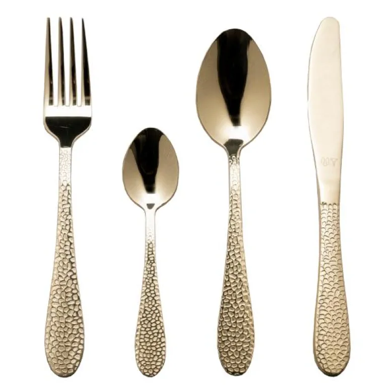 Ett sett: 16 deler (4 gafler, 4 skjeer, 4 kniver, 4 teskjeer).
