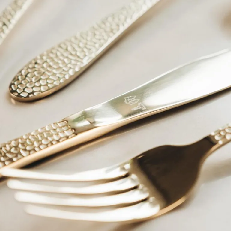 AURA Bestikksett er laget av førsteklasses materialer av høyeste kvalitet. Den robuste konstruksjonen sikrer enestående holdbarhet og lang levetid. Du kan være trygg på at dette bestikksettet vil være en trofast følgesvenn ved spisebordet ditt i mange år fremover.
