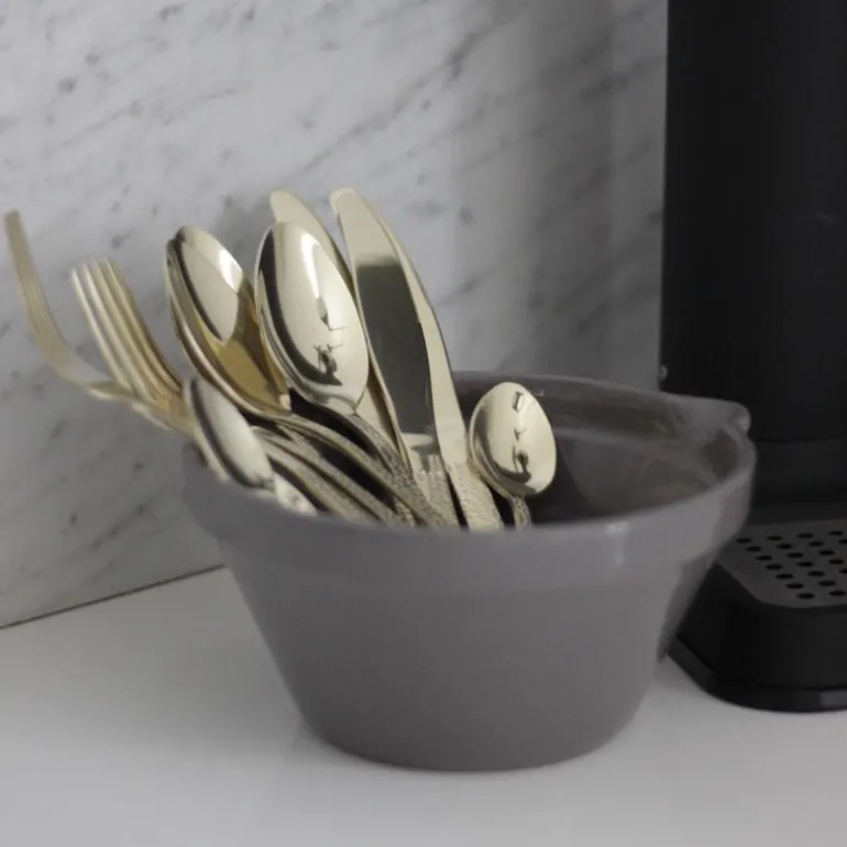 Enten du er en kulinarisk entusiast som ønsker å imponere gjestene dine med forførende servering eller bare ønsker å legge til en touch av eleganse til dine daglige måltider, vil AURA Bestikksett være det ultimate valget. Med sin blendende Cava-finish og fortryllende design passer dette settet perfekt til enhver stil eller innredning, og vil være et imponerende tillegg til ditt kjøkken eller spisestue.
