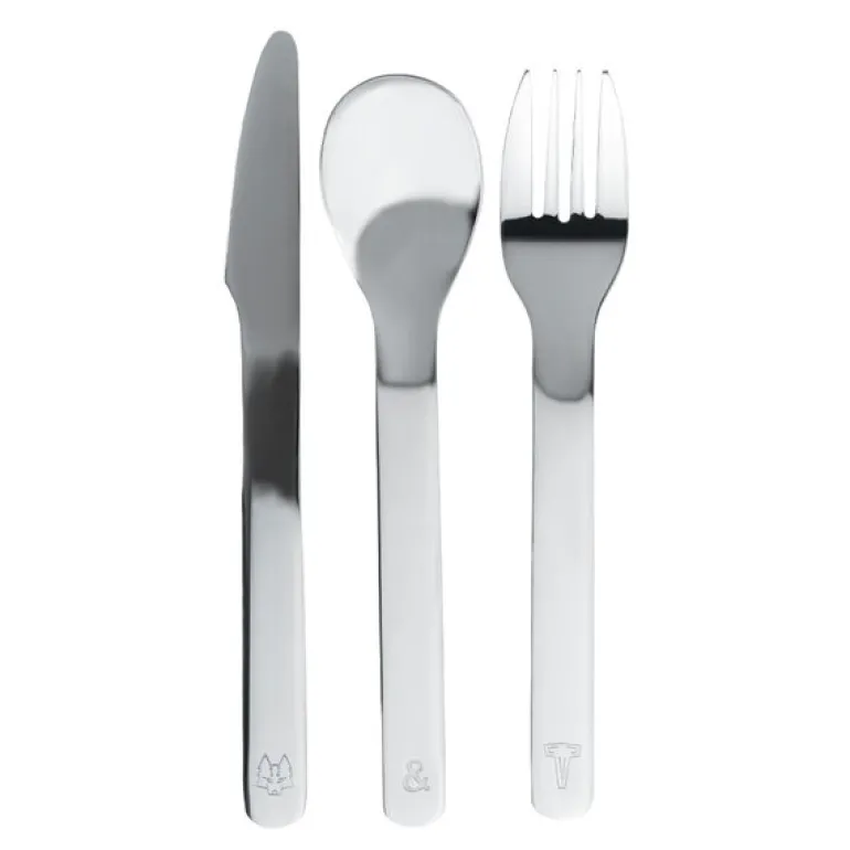 Frost Lupo barnebestikk 9 deler stål fra Vargen & Thor. Introduserer LUPO 8-dels bestikksett for barn: Gjør måltidene til en festlig og lærerik opplevelse!