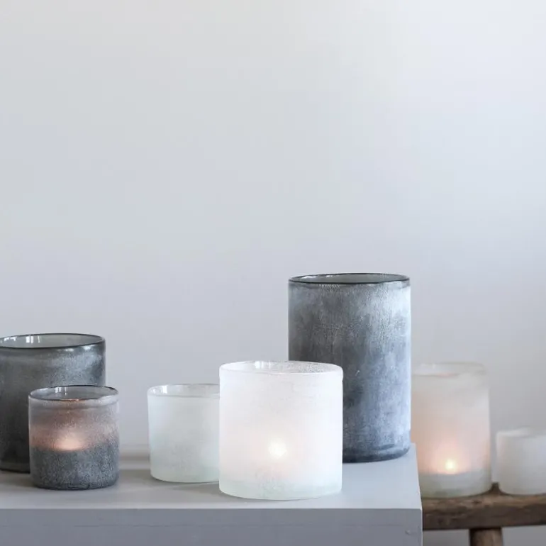 Tidløs lyslykt med frostet ytre. Lykten er et håndverk laget av dyktige glassblåsere med lang erfaring i den nordlige delen av Kina. Glasset er munnblåst og rulles deretter inn i kalsinert brus ved høy temperatur for å oppnå den kjemiske reaksjonen som gir lykten sin vakre unike frostede overflate. Den håndlagde Frost-lykten er tilgjengelig i fire forskjellige farger og i tre størrelser; Liten, middels og stor. Lykten ser flott ut alene, men kan også brukes sammen i en gruppe og kombineres i det uendelige. Bland farger, serier eller la det gå ton i ton.