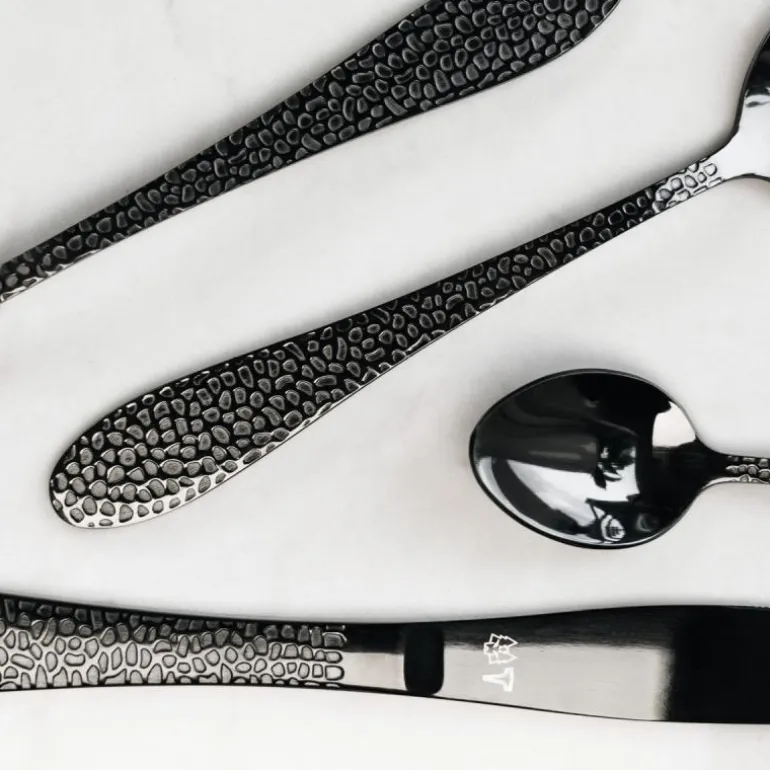 Det sorte bestikksettet gir en uttrykksfull og sofistikert stemning til din borddekking. Den dype, elegante fargen gir en kontrastfull og iøynefallende effekt som vil imponere gjestene dine. Uansett om det er en formell middag eller en uformell sammenkomst, vil ONYX Bestikksett være den perfekte følgesvenn for å skape et minneverdig spisemiljø.