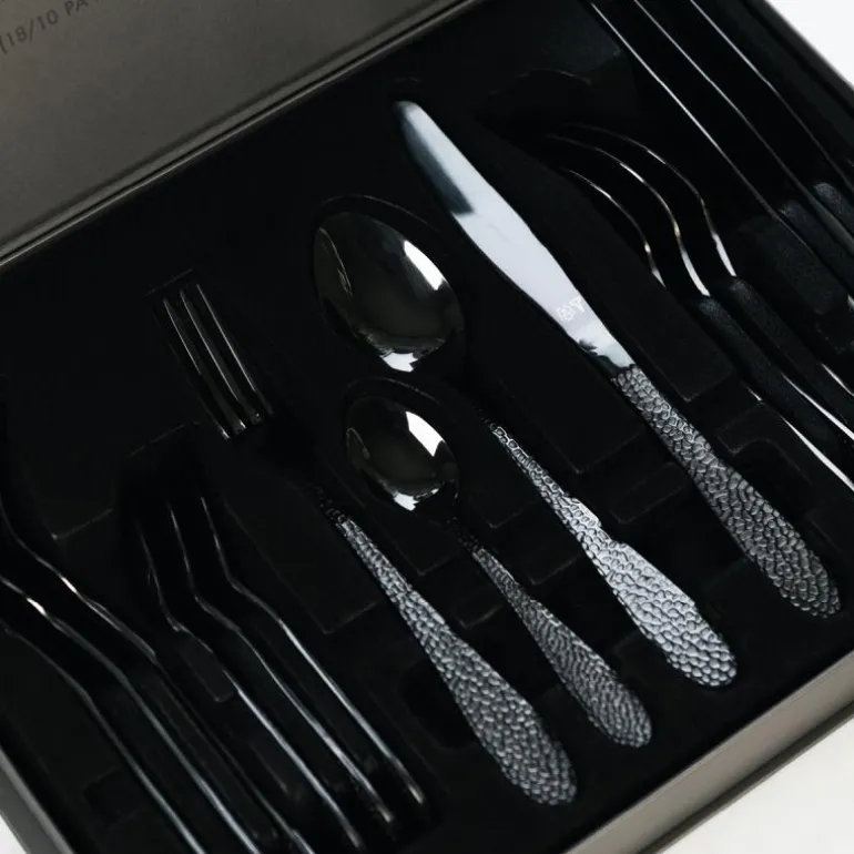 ONYX Bestikksett er laget av førsteklasses materiale som sikrer holdbarhet og lang levetid. Den sorte overflaten er laget for å motstå riper og falming, og settet vil forbli like strålende og sofistikert gjennom mange festlige anledninger. Du kan være trygg på at dette bestikksettet vil være en pålitelig og elegant følgesvenn ved spisebordet ditt.