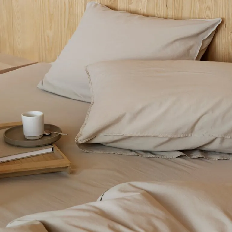 Frøya sengesett 200×220 cm beige fra Høie. Frøya i en delikat beigefarge som passer perfekt inn i de fleste soverom. Sengetøyet er laget av 100 % økologisk bomull, kjent for sin renhet og høye slitestyrke. De ekstra fine bomullstrådene gir en myk og behagelig følelse mot huden, og hvis du foretrekker et røffere sengesett som du kan glede deg over i mange år, er Frøya det rette valget for deg.