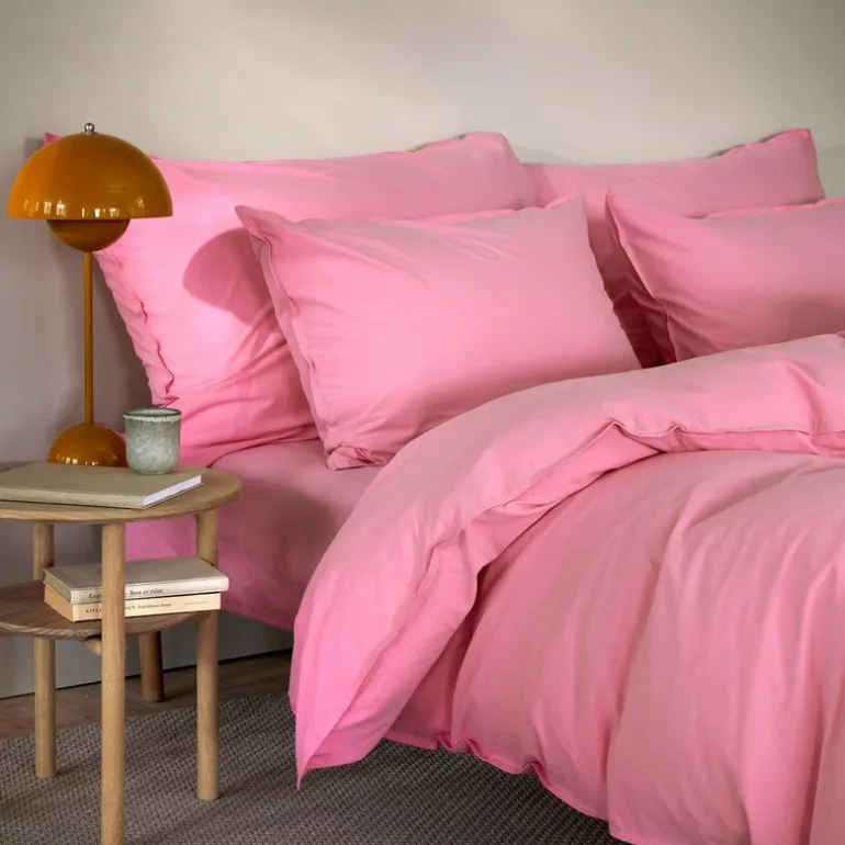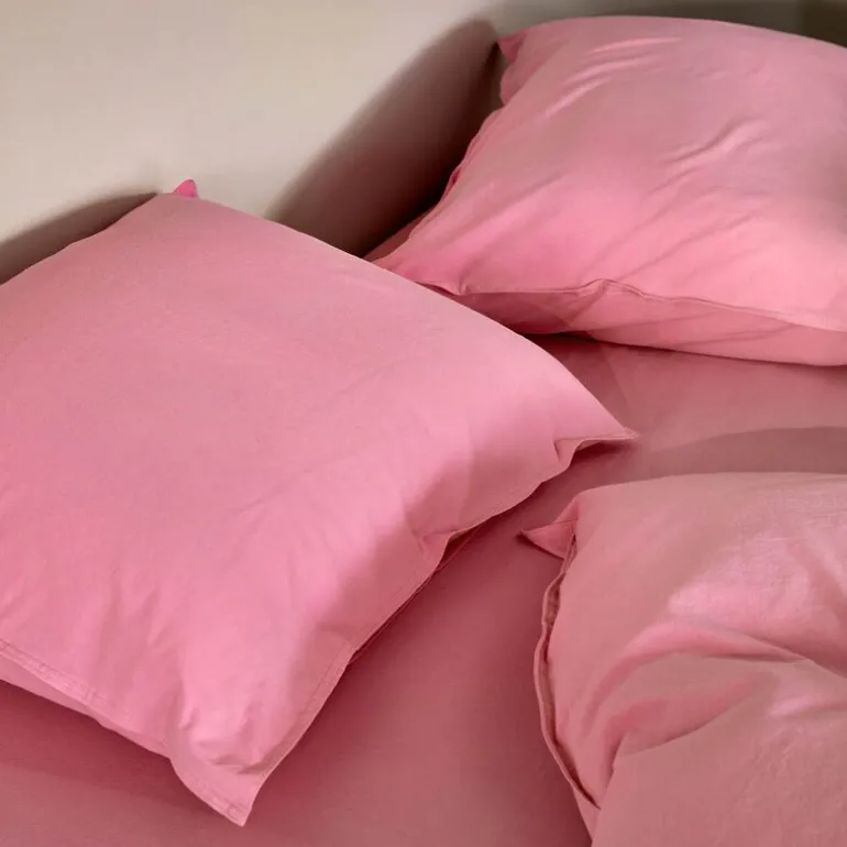 Frøya sengetøy 140×200 cm klarrosa fra Høie. Frøya sengesett i steinvasket bomull kombinerer komfort med et avslappet, stilrent uttrykk. Laget av 100 % økologisk bomull, er dette sengetøyet designet for å gi en behagelig og myk følelse mot huden, samtidig som de ekstra fine bomullstrådene sikrer høy slitestyrke. Den steinvaskede finishen gir en naturlig tekstur og et uanstrengt, krøllete utseende som tilfører sengen en avslappet eleganse.