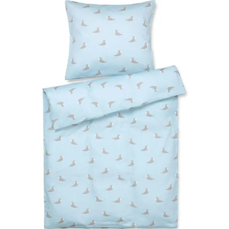 Det fine og myke sengetøyet Sangfugl Junior med motiv av den populære Kay Bojesen-sangfuglen gjør drømmeland til favorittdestinasjonen for de minste.