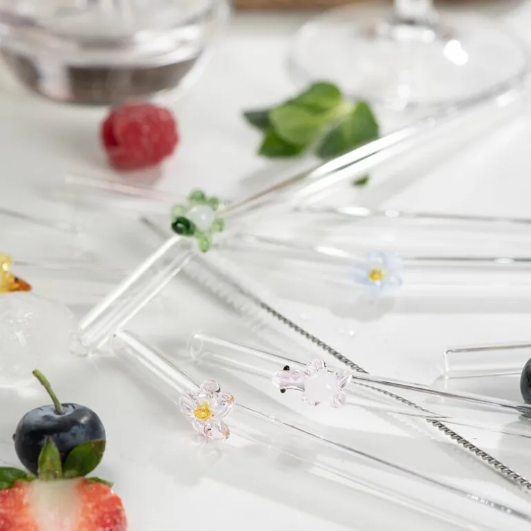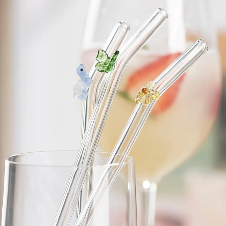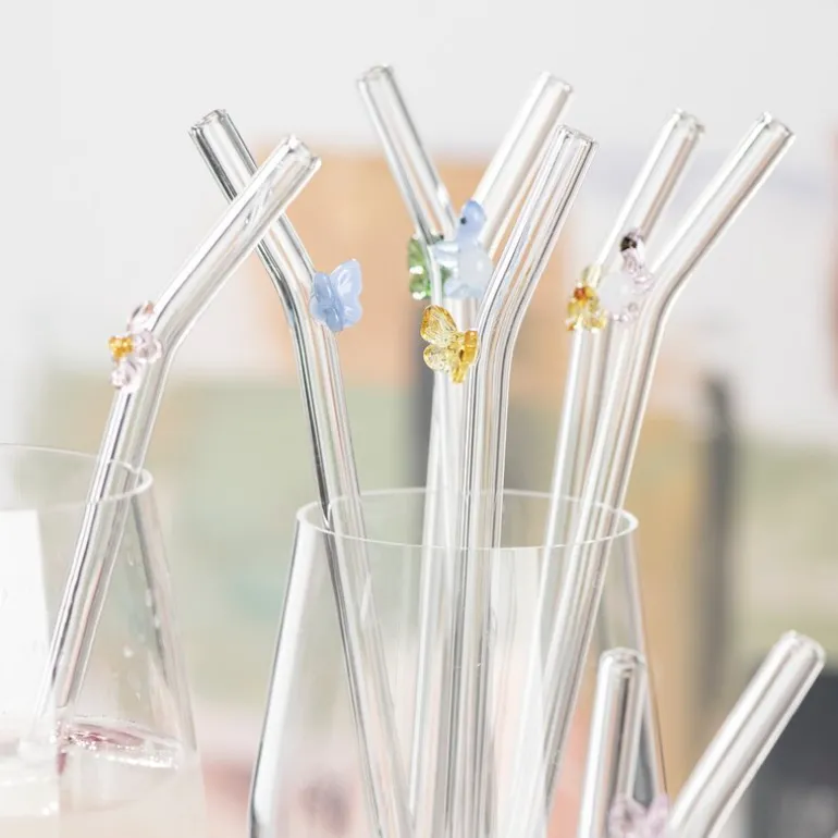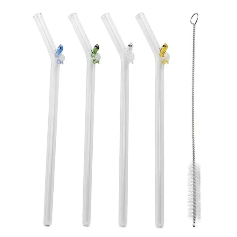 Fun sugerør fra Modern House kommer i en 4-pakning med sjarmerende skilpaddedekor og er laget av borosilikatglass – et slitesterkt materiale som tåler både varme og kalde drikker. Den lekne dekorasjonen gjør dem ideelle for sommerfester, bursdager eller hverdag med litt ekstra farge.