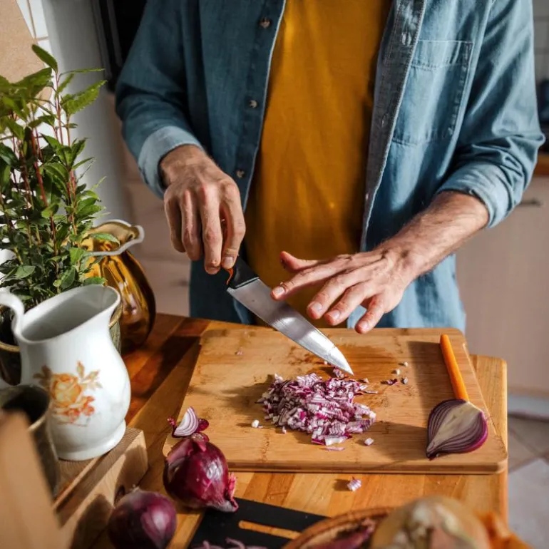 For hjemmekokker som setter pris på enkle og smarte kjøkkenredskaper er Fiskars Functional Form? kokkekniv en kniv man bør ha på kjøkkenet. Det holdbare bladet i japansk rustfritt stål er ideelt for hakking og skjæring av kjøtt, fugl, grønnsaker og urter. Det ergonomiske håndtaket har SoftGrip? detaljer og en dyp fingerhake, noe som sikrer en god ergonomi og ikke minst ivaretar sikkerheten. Som alle Functional Form? kniver, kan også denne vaskes i oppvaskmaskinen. Designet i Finland.
