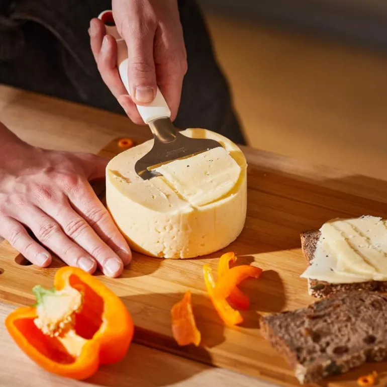 Ergonomisk ostehøvel perfekt til mykere oster. Det korte bladet i rustfrittstål forhindrer at osten setter seg fast i selve bladet.