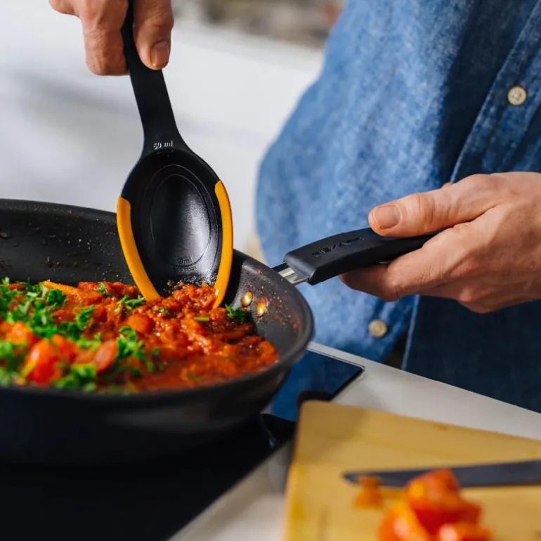 En smart og funksjonell sleiv i Fiskars Functional Form serie som er ideell til både tilberedning og servering. Sleiva har integrerte måleringer for teskje, spiseskje og 0,5 dl – en funksjonalitet som kan gi deg mindre oppvask. Den fleksible silikonkanten gjør det enkelt å komme til i kanter og avrundinger.