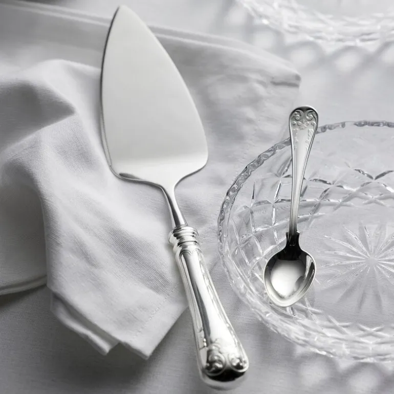 Gammal Fransk kakespade 26,5 cm EPNS fra Gense. Bestikkserien Gammal Fransk er romantisk og elegant. Designet er inspirert av 1700-tallets nyklassisisme, som på skaftet kombineres med et bladmønster i form av en fransk lilje. Designet er godt å holde i, og den har samtidig god tyngde når du veier bestikket i hånden. Design: Studio GAB