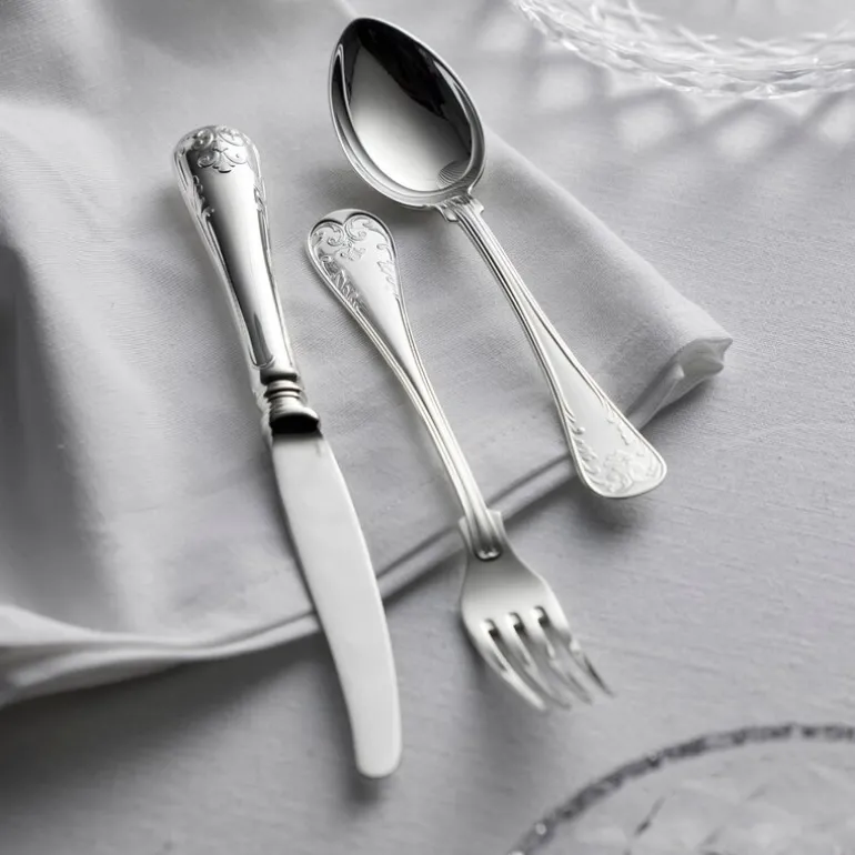 Gammal Fransk lunsjgaffel 18,6 cm 830 fra Gense. Bestikkserien Gammal Fransk er romantisk og elegant. Designet er inspirert av 1700-tallets nyklassisisme, som på skaftet kombineres med et bladmønster i form av en fransk lilje. Designet er godt å holde i, og den har samtidig god tyngde når du veier bestikket i hånden. Design: Studio GAB
