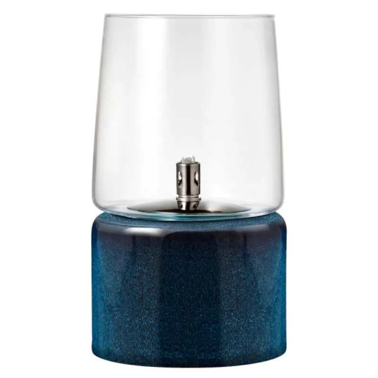 Gastro oljelampe 15 x 26 cm blå, fra Bitz. Hva er det ikke å elske med denne koselige oljelampen i steintøy og glass? Plasser den på spisebordet, i vinduskarmen eller i hyggekroken, tenn et lite stearinlys og nyt den. Lampen har en sokkel i glasert steintøy og en brenner i rustfritt stål med veke. Oljelampen fås i to størrelser og fire av de vakre fargene vi allerede kjenner fra BITZ’ steintøykolleksjon, og derfor er det så enkelt og opplagt å integrere oljelampen i både borddekkingen og den øvrige innredningen.