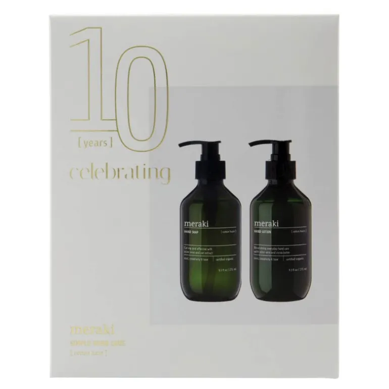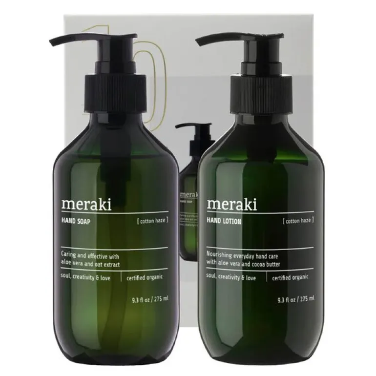 Gaveeske håndpleie i duften ‘Cotton Haze’ fra Meraki er den perfekte gaven til deg selv eller noen du setter pris på. Settet inneholder en skånsom håndsåpe og en fuktighetsgivende håndkrem som sammen gir hendene pleie og næring gjennom dagen.