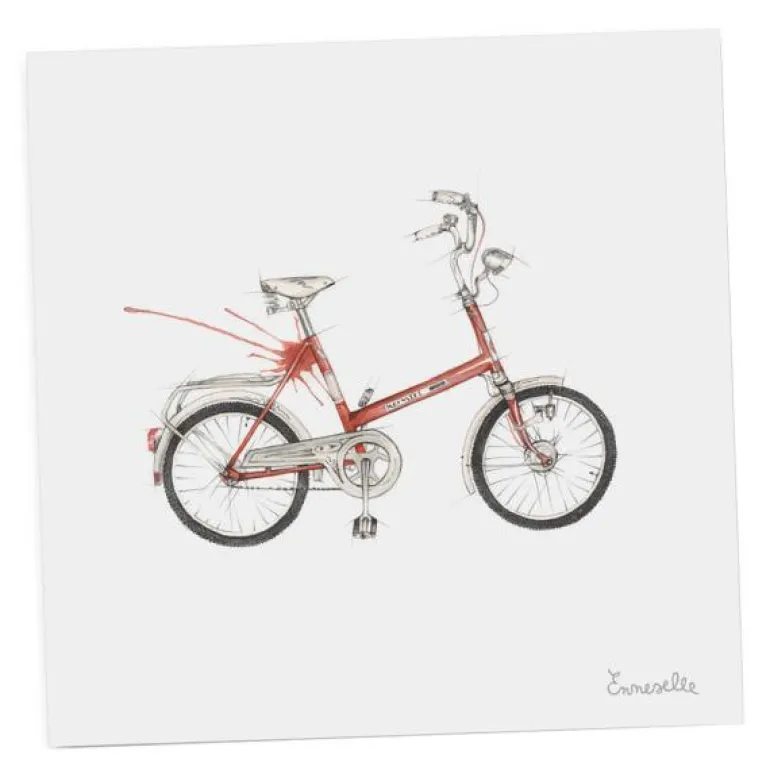 Fin gavelapp fra Emmeselle med motiv av kombisykkel. Motivet er etter tegninger fra kunstner og illustratør Mona Stenseth Erlandesn.