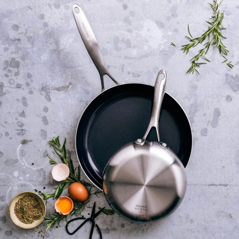 Stekepannene har en børstet finish på utsiden og et unikt sunt keramisk non-stick belegg på innsiden, som gjør matlagingen enkel og miljøvennlig. De tåler ovner opptil 220 °C og er enkle å rengjøre, enten for hånd eller i oppvaskmaskinen.