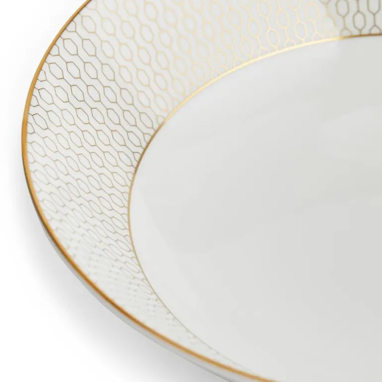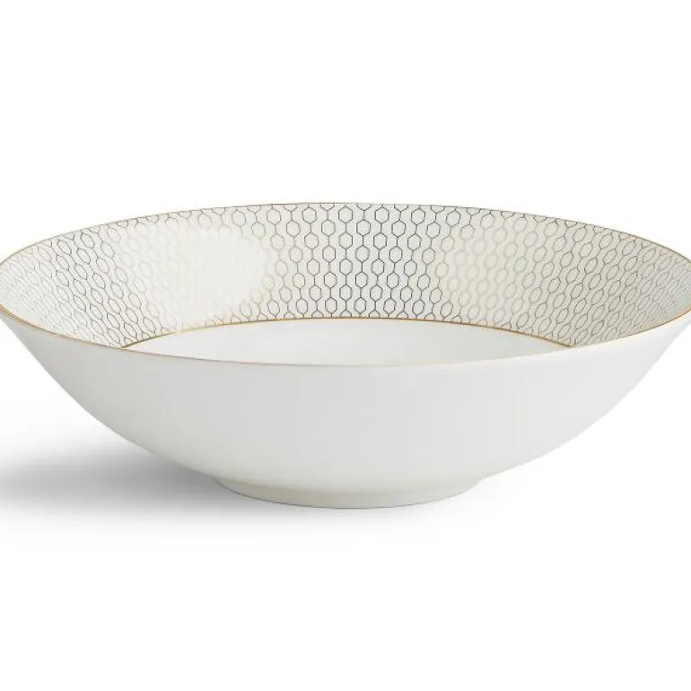 Gio Gold Soup/Cereal Bowl 20cm/8.3in. Ved å kombinere luksus og moderne stil, representerer Wedgwoods Gio Gold-kolleksjon den perfekte blandingen av håndverk og design for det moderne hjem. Det innovative gullmønsteret gjør Gio Gold til et luksuriøst tilskudd til borddekkingen, som også enkelt kan kombineres med klassiske, hvite kolleksjoner for et mer avslappet stil. Gio Gold og Gio passer perfekt sammen. Designet for stilige kvelder, ettermiddagste og lunsjer med venner.