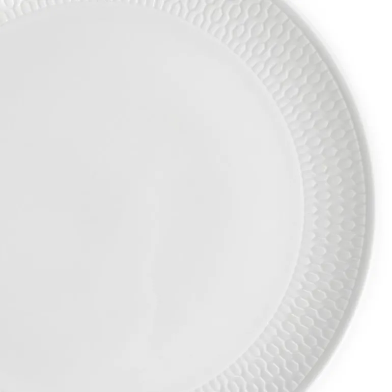 Gio Plate Coupe 17cm/7in. Gio er en moderne kolleksjon med et preget design inspirert av Wedgwoods håndlagde intaglio-teknikker. Lag av keramikk er skåret gjennom for å få frem en tekstur og en taktil overflate på hver del, mens det tidløse, hvite benporselenet skaper en vakker gjennomskinnelighet. Gio er en perfekt frittstående serie i hjemmet, men kan kombineres med andre kolleksjoner som Gio Gold for et mer sofistikert uttrykk. Kolleksjonen tåler både oppvaskmaskin og mikrobølgeovn, og er designet for å brukes hver dag.