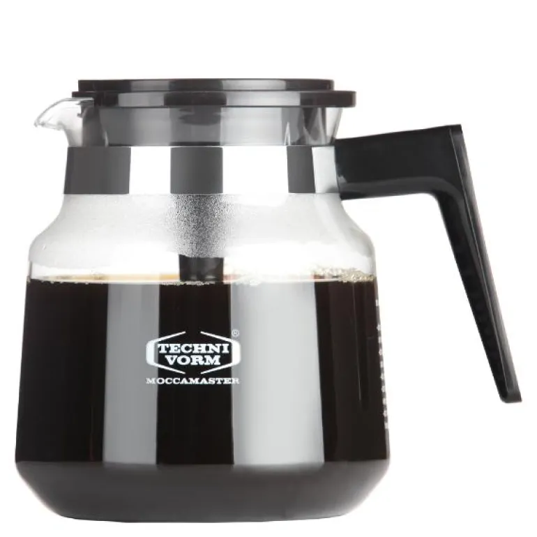 Moccamaster glasskanne med svart håndtak 1,25l. Plastdelene er fri for BPA og BPS.