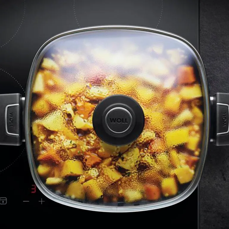 Glasslokket fra Woll på 28 cm er utformet for firkantede kokekar og gir god oversikt under matlaging takket være det klare glasset. En ventil i knotten sørger for at damp slipper jevnt ut, og metallkanten gir ekstra stabilitet og slitestyrke.