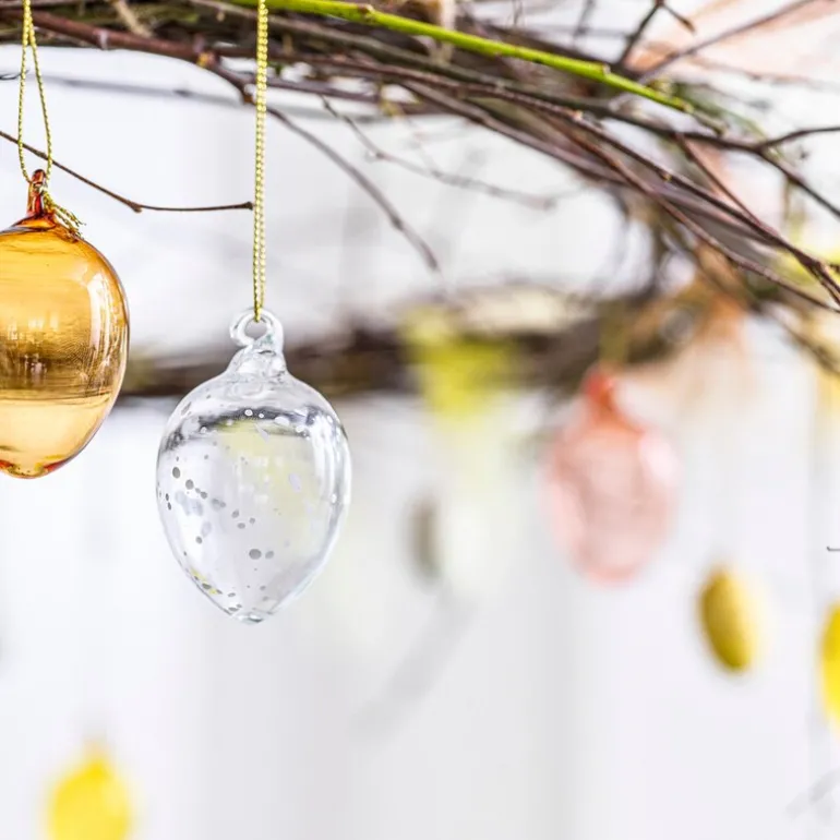 Cultdesigns glassegg er et sett med seks vakre dekorasjoner som måler 6 cm hver. Laget i klart glass, med noen av eggene dekorert med delikate hvite sprut, skaper de en perfekt balanse mellom moderne design og tradisjonell estetikk.