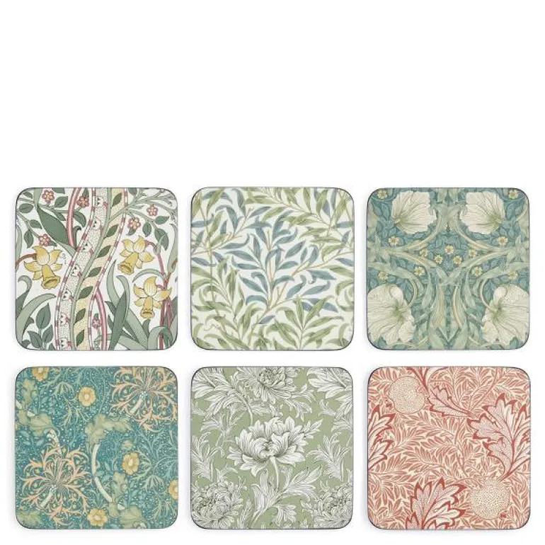 Dette miksede settet med seks glassunderlag fra Morris & Co. bringer klassisk mønsterkunst til bordet. Med seks ulike motiver – inkludert ikoniske Pimpernel, Daffodil, Willow Bough og Seaweed – kombinerer settet kontrast og harmoni i moderne nyanser som passer inn i både tradisjonelle og minimalistiske hjem.