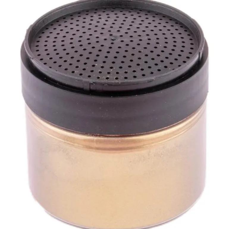 Lag skinnende metalleffekter med glitterpulveret, Gulldryss, fra Cacas. Pulveret gir en fantastisk glans til dine bakverk, sjokolade og mer. Pulveret er en blanding av store og små gullpartikler som kan drysses over alt av mat. Det perforerte lokket gjør at en perfekt mengde pulver kommer ut og legger seg fint på dine bakverk.