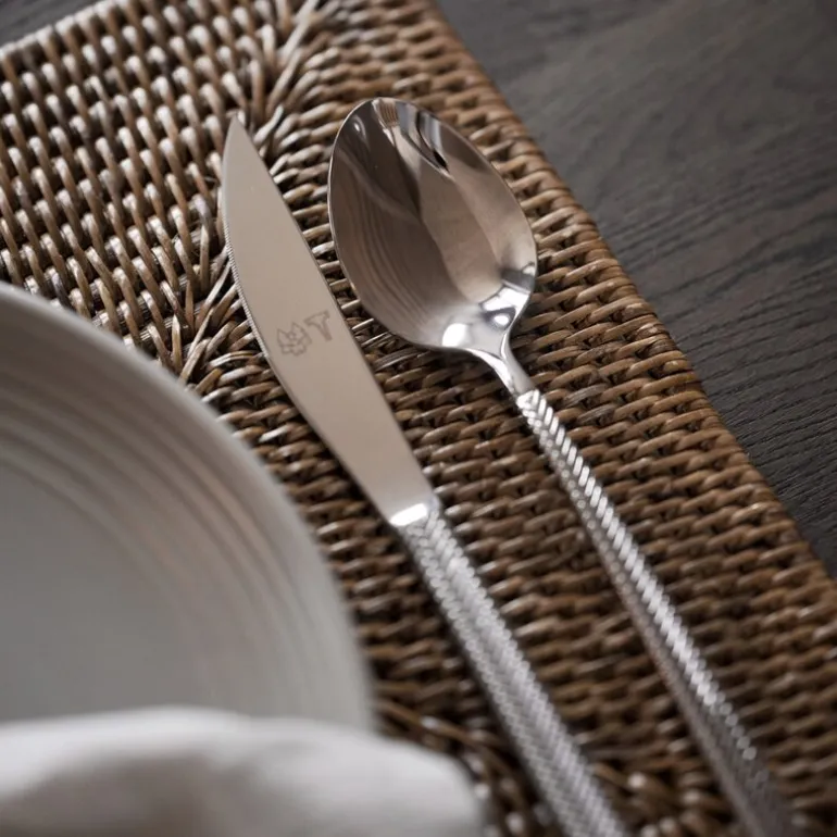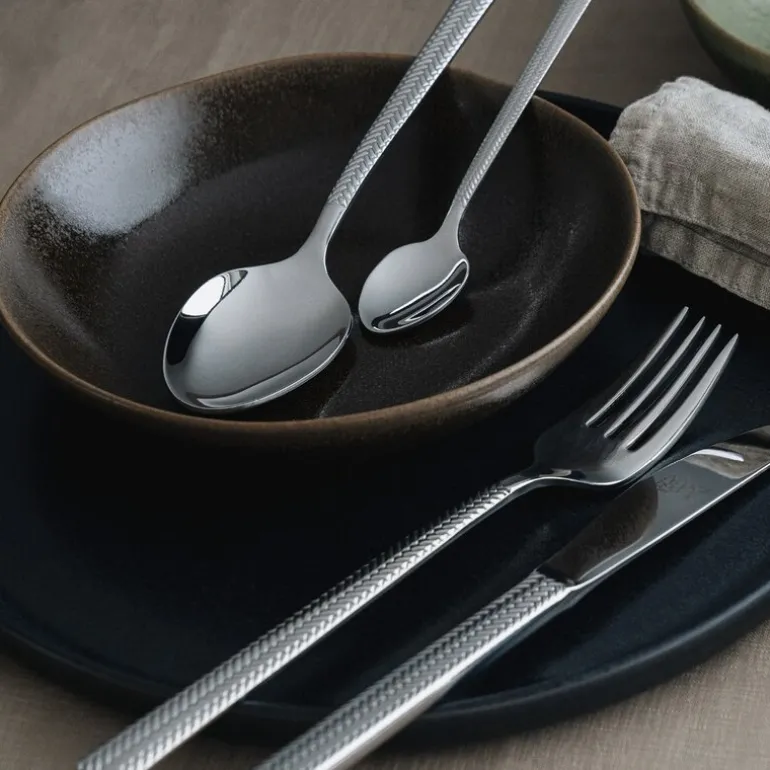 Bestikksettet, som består av gaffel, kniv, skje og teskje for fire personer, er laget av høykvalitets rustfritt stål. Dette sikrer en solid og slitesterk konstruksjon som tåler daglig bruk uten å miste sin glans. I tillegg gjør materialets motstandskraft mot korrosjon det til et praktisk og varig valg for ethvert kjøkken. Ergonomien er nøye gjennomtenkt, slik at hvert stykke ligger behagelig i hånden, og gjør måltidene enda mer komfortable.
