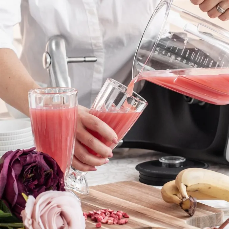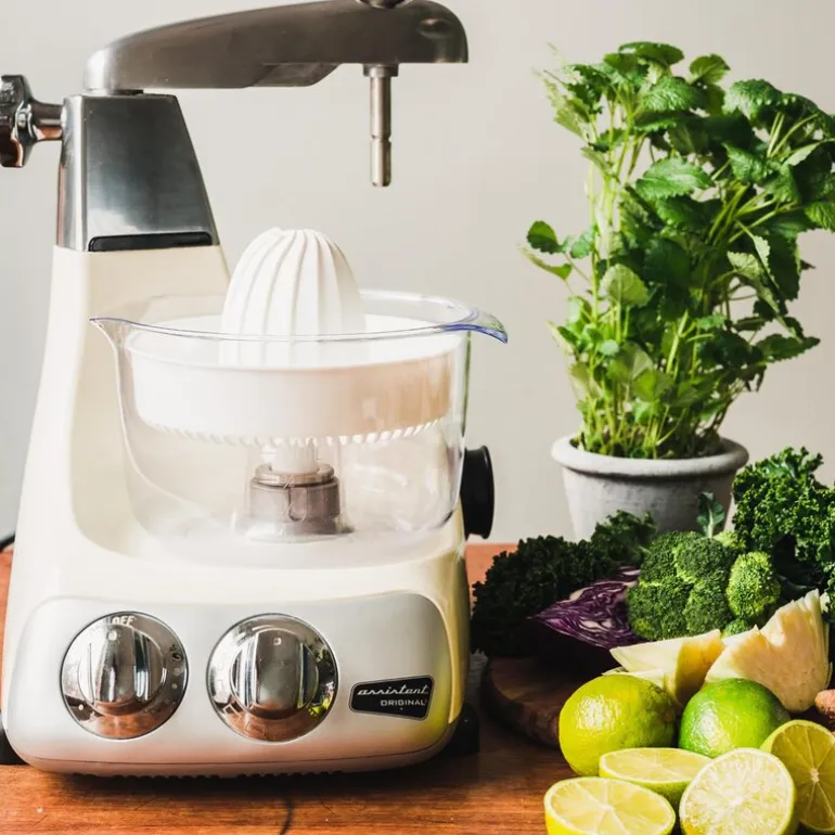 Blenderen er laget av slitesterk, Tritan-plast og er ideell for å lage smoothies, sauser og bærmos med silkemyk konsistens. Sitruspressen gir deg muligheten til å presse frisk juice av sitrusfrukter, med en beholder på 1,2 liter som rommer nok til hele familien. Grønnsakskutteren leveres med tre tromler som gjør det raskt og enkelt å skjære, rive og kutte grønnsaker til både salater og råkost.