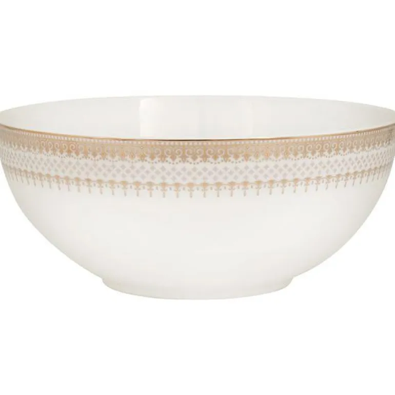 Bolle i den nye serien Gold Grande produsert av Royal Porcelain. Gold Grande er et allsidig og elegant servise i benporselen. Serien har tradisjonelle former med et delikate design i varme gulltoner. Kombinasjonen av matt og blank finish i glasuren gir Gold Grande et elegant uttrykk. Serviset kan vaskes i oppvaskmaskin på inntil 55 grader. Det anbefales å halvere vaskepulvermengden og å bruke glansemiddel. Med Gold Grande kan du dekke flotte bord til både høytid og fest. Serien består av 15 deler og inkluderer det du trenger til frokost, lunsj, middag og kaffe. Gold Grande er et naturlig valg på bryllupslisten.