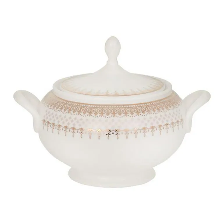 Sukkerskål i den nye serien Gold Grande produsert av Royal Porcelain. Gold Grande er et allsidig og elegant servise i benporselen. Serien har tradisjonelle former med et delikate design i varme gulltoner. Kombinasjonen av matt og blank finish i glasuren gir Gold Grande et elegant uttrykk.
