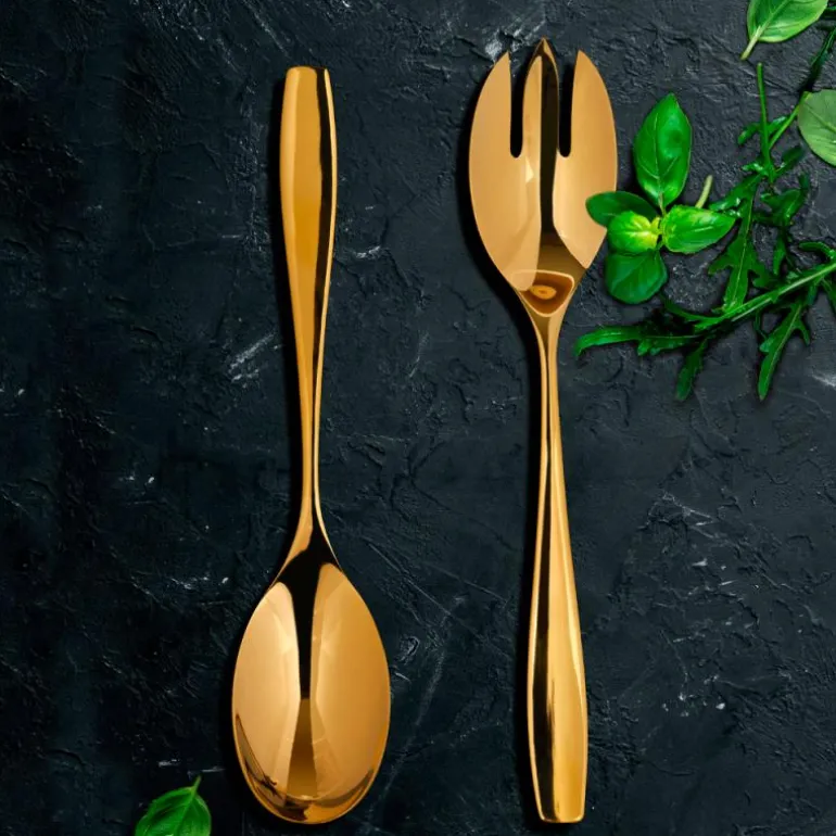 Lekkert salatbestikk i blank gull finish. Perfekt til supplering av Golden Rose serien.
