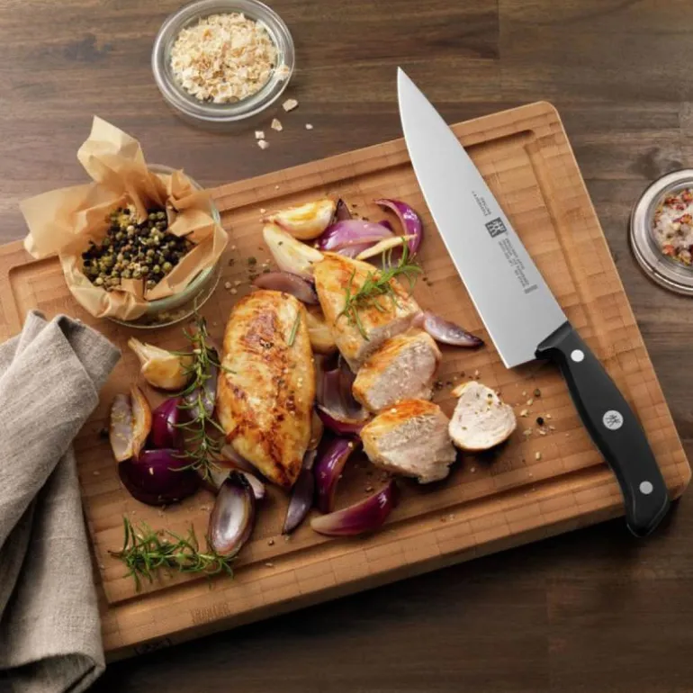 Zwilling® Gourmet kokkekniv 20 cm. Et av de viktigste verktøyene på kjøkkenet er nettopp en kokkekniv til å kutte, dele og hakke. Kniven er utmerket til å kutte store kjøttstykker og også frukt og grønnsaker.