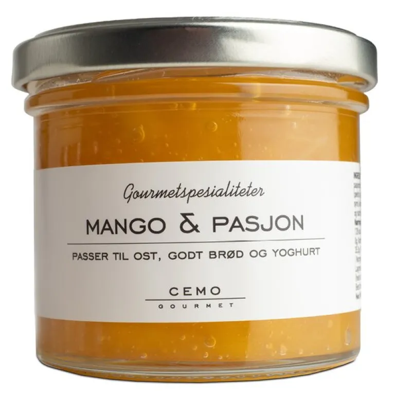Gourmet mango- og pasjonssyltetøy 113g fra Cemo. Et deilig norskprodusert syltetøy som tilfører et friskt preg til enhver rett.