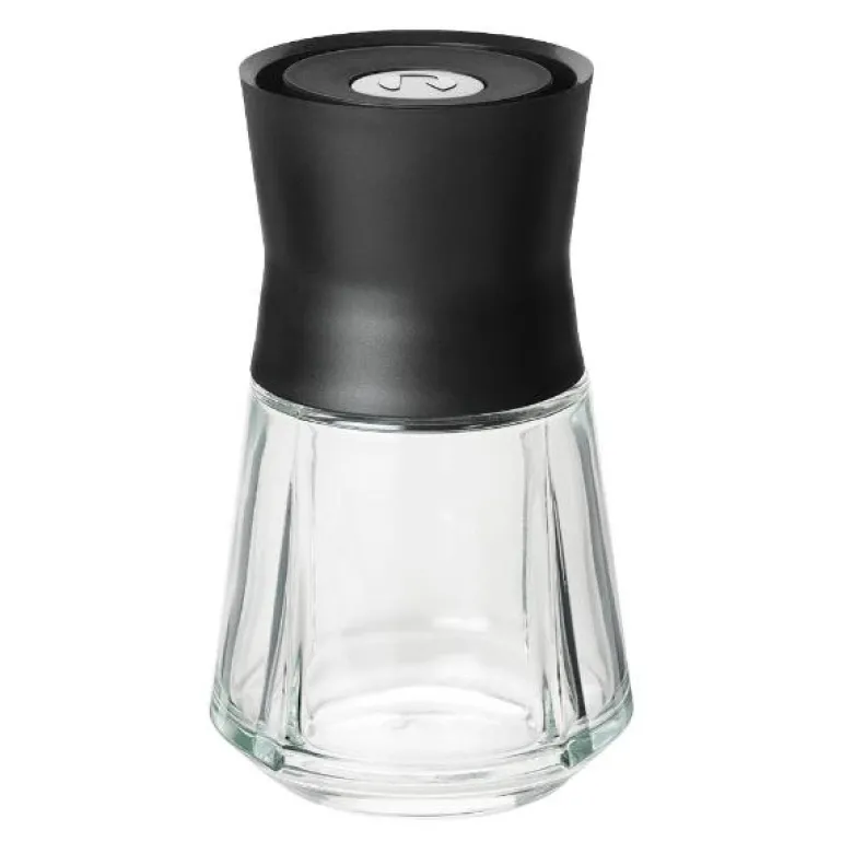 Den er 14 cm høy med en diameter på 7,5 cm og består av en beholder i klart glass med klassiske Grand Cru-fasetter samt et sort plastlokk.