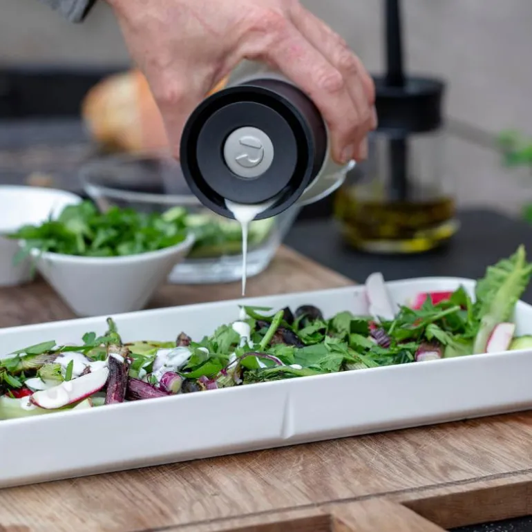 Dressingshakeren er perfekt til oppbevaring, tilberedning og servering av hjemmelagde dressinger