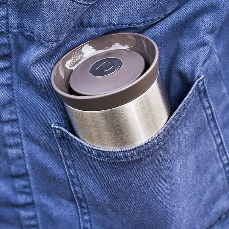 Grand Cru Outdoor er en serie som tar høyde for den travle hverdagen og den delen av livet som foregår utendørs. Serien inneholder blant annet dette stilrene termokruset. 360-graders-lokket gjør det mulig for deg å drikke og helle fra alle sider, og så er den 100 % væsketett. Termokruset kommer med et lokk i mykt silikon, som har en flott mørkegrå farge. Det betyr også at du får et termokrus som ikke bare er praktisk, men som også tar seg flott ut mens den holder godt på varmen. Termokruset kan romme 40 cl. Tåler oppvaskmaskin og er fri for ftalater og bisfenol A (BPA).